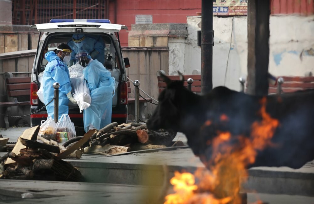 Nhà hỏa táng Nigambodh Ghat ở New Delhi đã xử lý hơn 500 trường hợp kể từ khi dịch bùng phát. Khi một số lò thiêu bị hỏng, không có người sửa chữa, buộc nhân viên phải chuyển qua dùng giàn thiêu truyền thống bằng gỗ.
