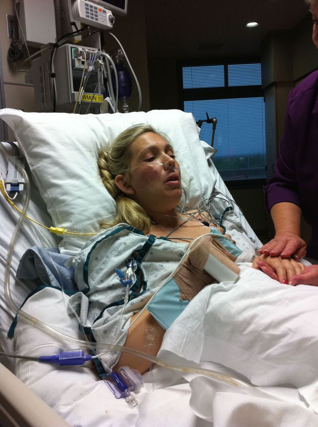 Sau khi được chuyển đến một bệnh viện khác cách đó 1 giờ đồng hồ lái xe, Melanie đã được cắm máy thở để duy trì hoạt động của tim và phổi trước khi bước vào một ca phẫu thuật khác.
