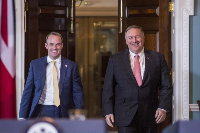 Ngoại trưởng Mỹ Mike Pompeo (phải) và người đồng cấp Anh Dominic Raab. (Ảnh: Getty)