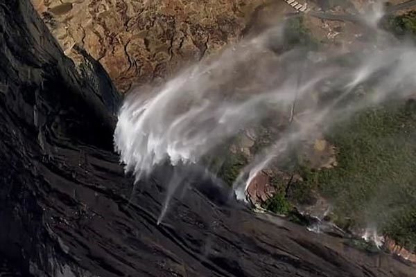 Trong đoạn video được nhiều hãng thông tấn đăng tải, một trong hai thác nước hình thành trên vách đá dường như đang thách thức trọng lực, chảy ngược từ dưới lên trên, trong lúc những đợt sóng lớn va đập dữ dội vào bờ đá phía dưới.