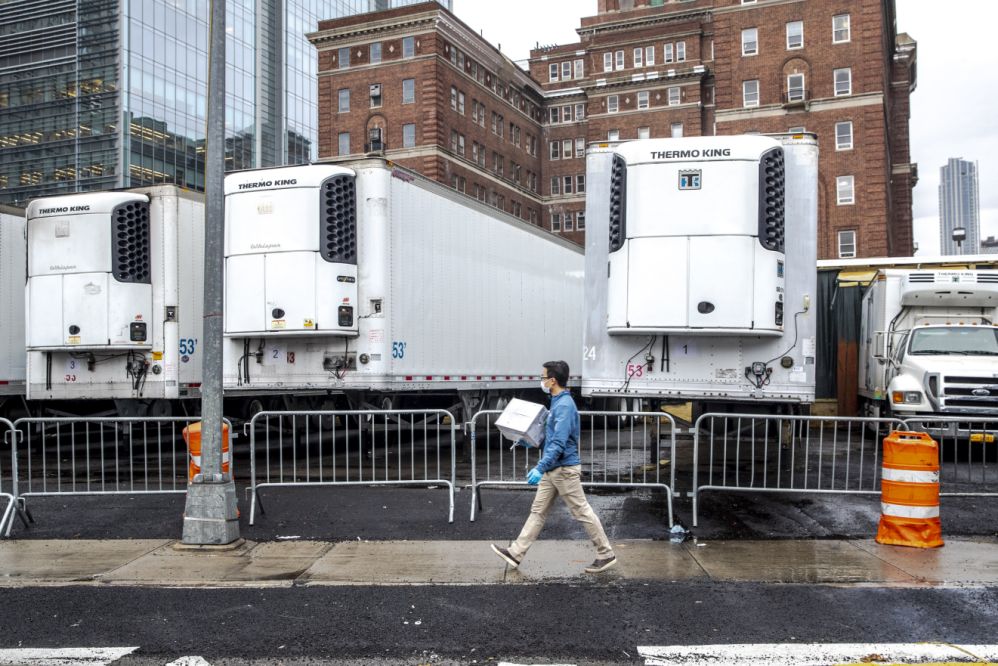 Xe tải đông lạnh chứa thi thể bệnh nhân Covid-19 ở Mỹ (ảnh: New York Times)