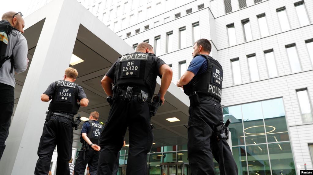 Cảnh sát Đức canh gác bên ngoài Bệnh viện Charite Mitte, Berlin, nơi lãnh tụ đối lập Nga Alexei Navalny được chữa trị (ảnh chụp ngày 22/8/2020)