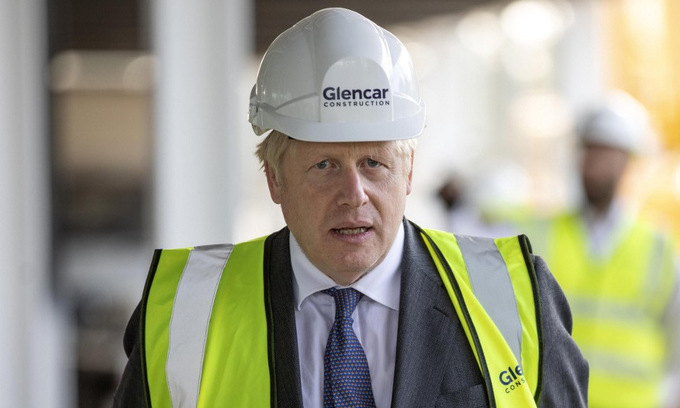 Thủ tướng Johnson thăm một công trường ở miền trung nước Anh hôm 18/9. Ảnh: AFP.