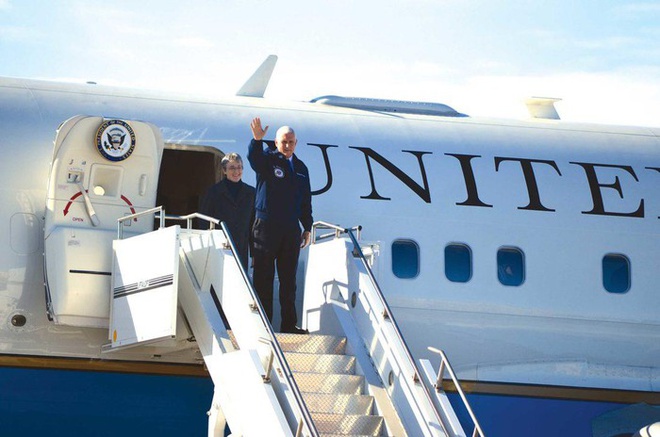 Phó tổng thống Mike Pence trên chiếc chuyên cơ Air Force 2. Ảnh: BDN.