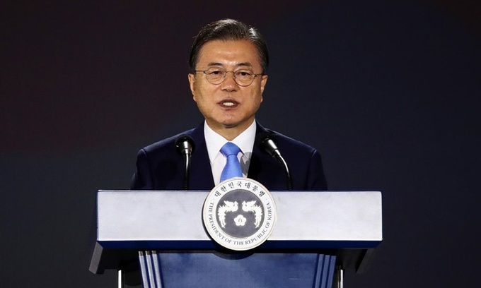 Tổng thống Moon Jae-in phát biểu tại thủ đô Seoul, Hàn Quốc, ngày 15/8. Ảnh: Reuters.