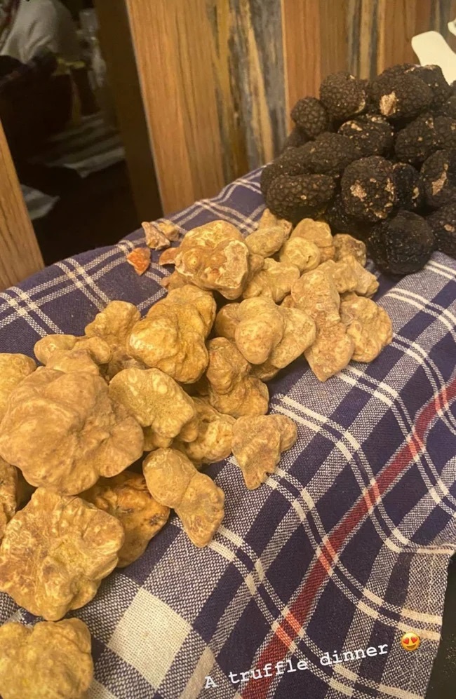 Em chồng Hà Tăng đã được thưởng thức bữa tối với nhiều cách chế biến nấm truffle khác nhau, từ bào nhỏ sợi nấm cho đến cắt lát rắc lên các đĩa thức ăn.