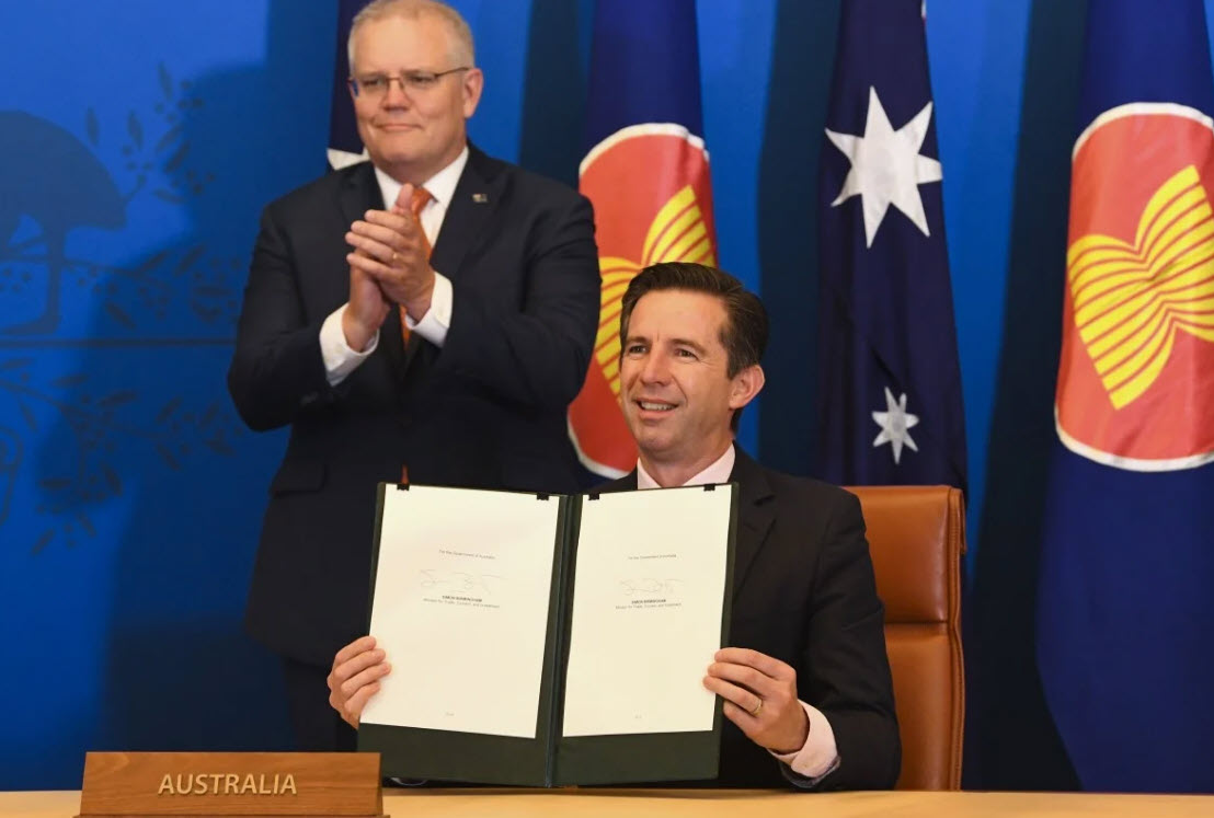 Bộ trưởng Thương mại Úc Simon Birmingham ký thỏa thuận thương mại tự do RCEP.
