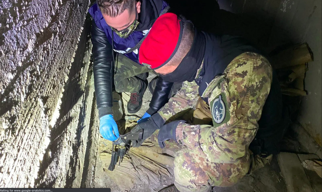 Cảnh sát quân sự tìm thấy một khẩu súng được giấu trong nhà một mafia ở Foggia trong cuộc đột kích vào rạng sáng 16/11. Ảnh: Guardian.