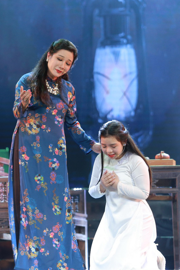 Thanh Thanh Hiền và bé Tấm - con gái chị khi biểu diễn trên sân khấu.