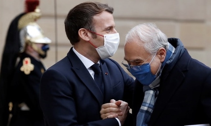 Hôm 14/12, Tổng thống Pháp Emmanuel Macron chào đón lãnh đạo Tổ chức Hợp tác và Phát triển Kinh tế (OECD) Angel Gurria bằng một cái bắt tay nồng ấm trên sân Điện Elysee, rồi kéo lãnh đạo 70 tuổi này về phía mình cho một cái ôm nhẹ.