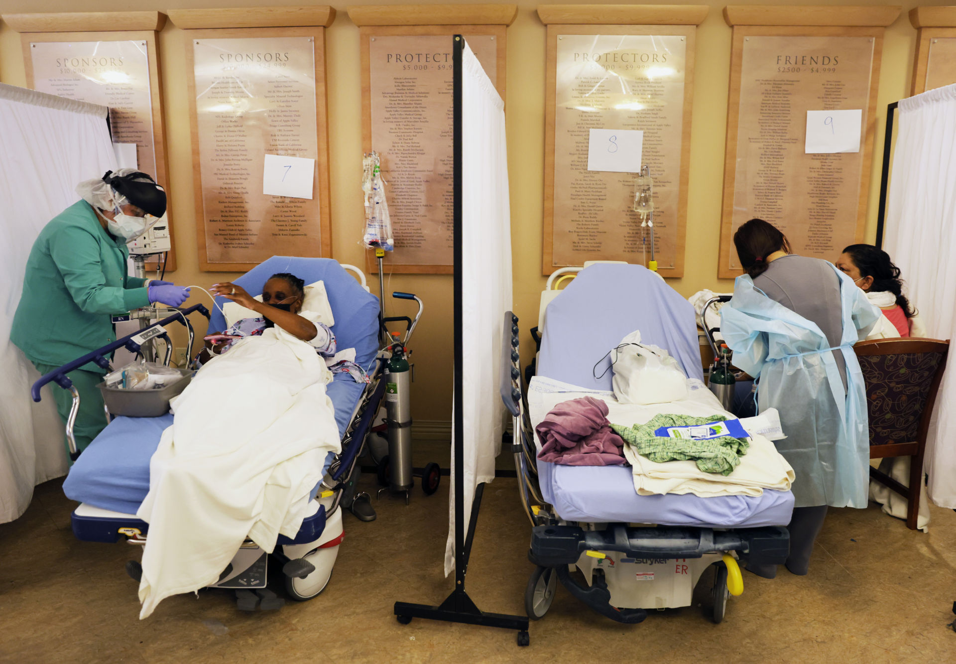Các nhân viên y tế từ y tá đến bác sĩ đều kiệt quệ sức lực và tinh thần trước cảnh dịch bùng phát kể từ sau lễ Tạ Ơn và trước mắt tình hình càng lúc càng tệ hơn, do người chết chồng chất tại các nhà xác, bệnh nhân nằm kín các hành lang bệnh viện.