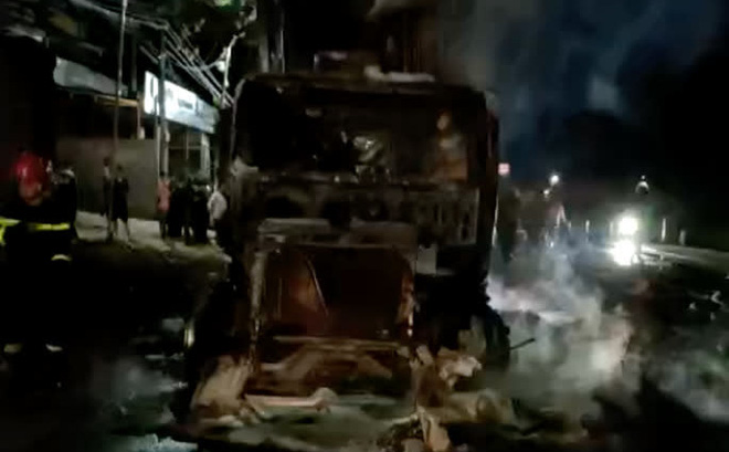 Old  Default Xe container bốc cháy lúc nửa đêm, tài xế bung cửa thoát thân