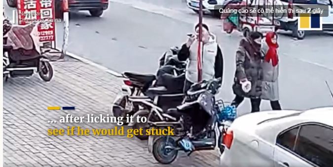 Sự cố xảy ra sáng ngày 7/1 tại thành phố Tảo Trang, tỉnh Sơn Đông, phía bắc Trung Quốc. Nam thiếu niên đang học việc tại một cửa hàng cắt tóc đứng tần ngần trước cột kim loại, trước khi liếm thử chiếc cột lạnh giá và lập tức hứng hậu quả.