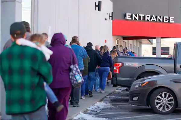 Dòng người xếp hàng chờ mua súng bên ngoài một cửa hàng. Ảnh: AFP.