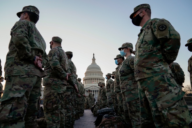 Các binh sĩ này đang được triển khai để hỗ trợ bảo vệ Điện Capitol, trong bối cảnh lo ngại tình trạng bạo lực có khả năng nổ ra gần lễ nhậm chức của ông Biden.
