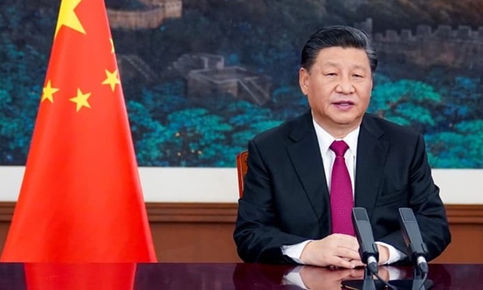 Chủ tịch Trung Quốc Tập Cận B́nh phát biểu tại hội nghị trực tuyến của Diễn đàn Kinh tế Thế giới ngày 25/1. Ảnh: Xinhua.