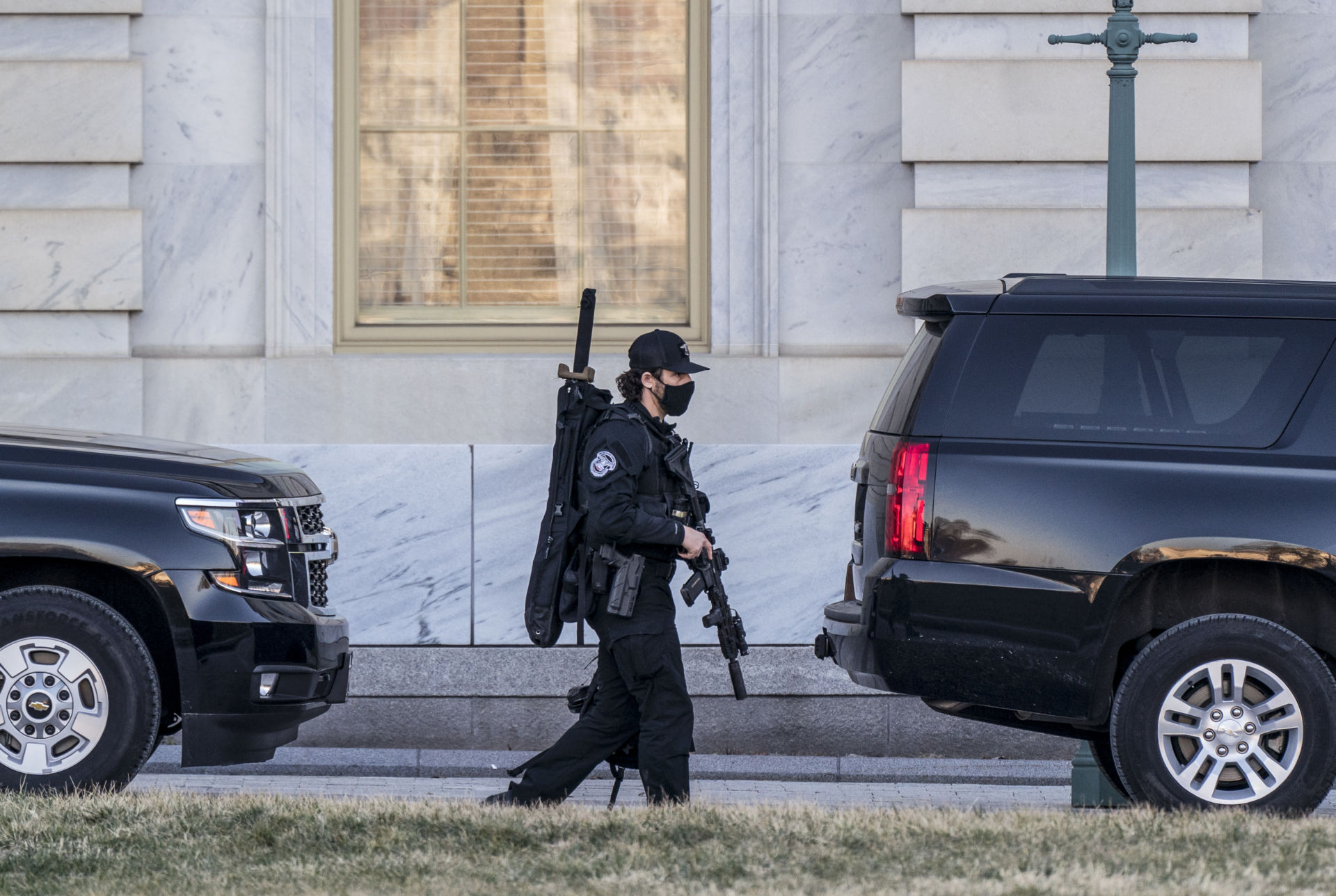 Một cảnh sát đi tuần xung quanh tòa nhà Quốc Hội hôm Thứ Tư, 3 Tháng Ba. (Hình: AP Photo/J. Scott Applewhite)