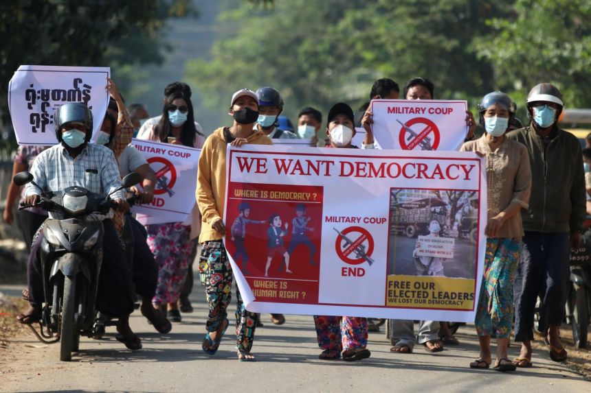 Hàng nghìn người đã tuần hành ôn hòa ở thành phố Mandalay để kêu gọi Thống tướng Min Aung Hlaing trao trả quyền lực.