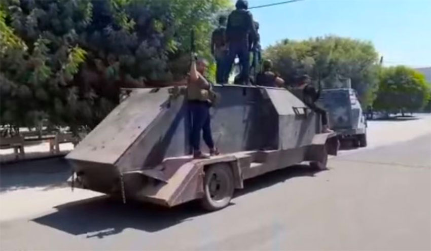 Đoạn video quay cảnh xe bọc thép do CJNG tự thiết kế kéo chiếc xe bọc thép của băng đối thủ. Các tay súng ngồi trên xe bọc thép, diễu hành qua các con phố ở Aguililla.