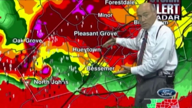 “Hãy để tôi kiểm tra nhanh một vài người thân”, ông James Spann nói trên sóng truyền hình. Liền sau đó, một đồng nghiệp đã tiếp quản vị trí của ông Spann khi ông vẫn đang đứng trước những tấm bản đồ khí tượng.