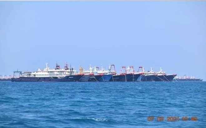 Khoảng 200 tàu Trung Quốc hiện diện tại bãi Ba Đầu, thuộc quần đảo Trường Sa của Việt Nam hôm 7/3. Ảnh: The Inquirer.