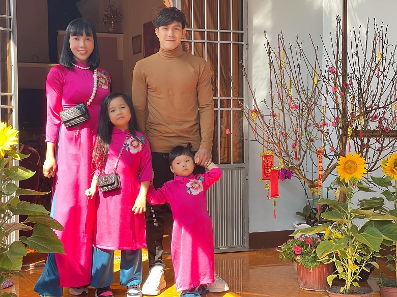 Vợ chồng Nguyễn Trần Duy Nhất bên gia đình nhỏ.