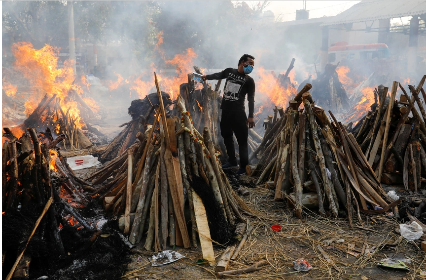 Những giàn thiêu cháy suốt ngày đêm ở Ấn Độ. Ảnh: Reuters.