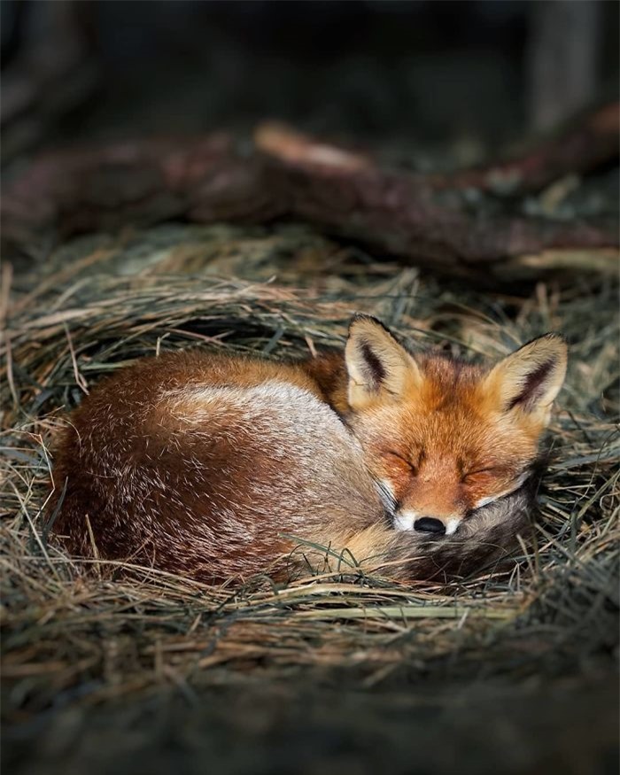 thì chú cáo nhỏ đang ngủ trong bụi cây lại cho ta cảm giác vô cùng thư thái.