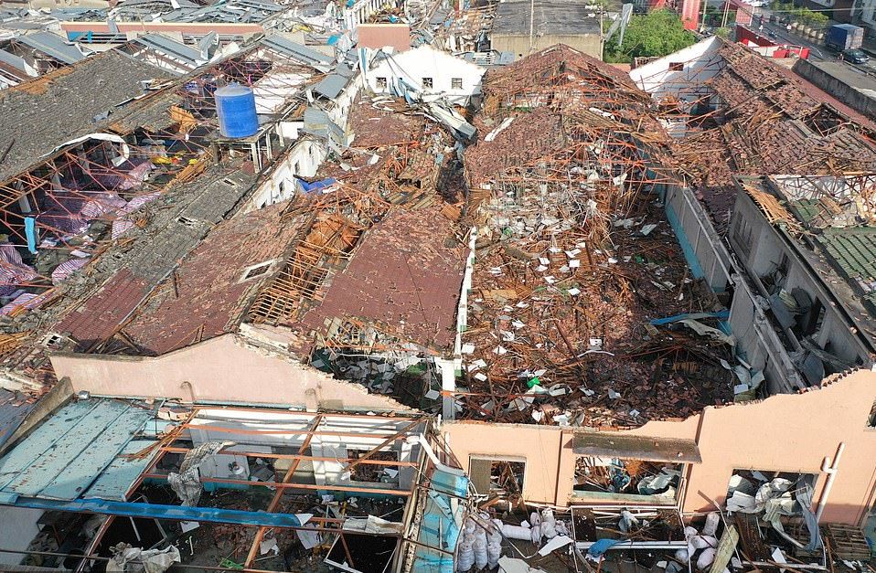 Một nhà máy ở thành phố Tô Châu bị thiệt hại nặng nề sau trận lốc xoáy. Ảnh: Getty