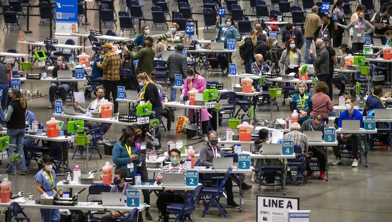 Một trung tâm tiêm chủng phòng COVID-19 tại Mỹ. Ảnh: USAToday