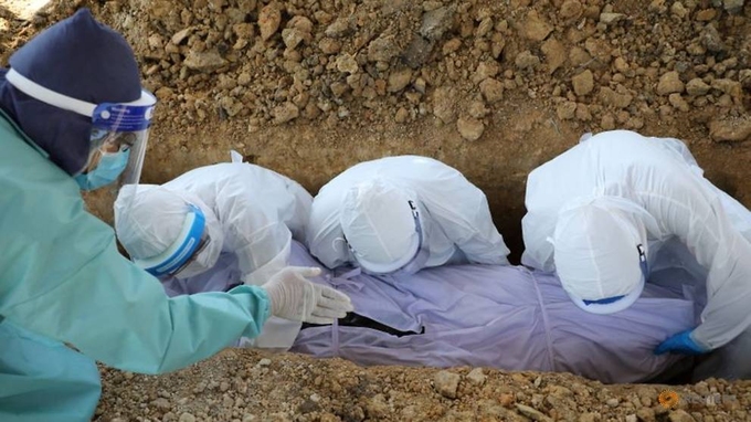 Người Malaysia chôn cất một thi thể ở Kuala Lumpur ngày 23/5. Ảnh: Reuters.