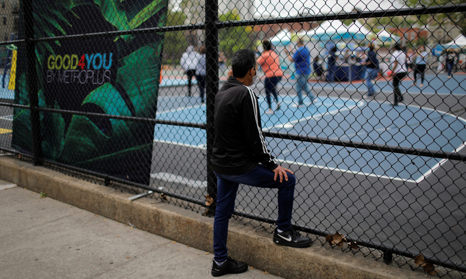 Người đàn ông đứng bên ngoài nhìn vào một địa điểm tiêm chủng ở quận Bronx, thành phố New York. Ảnh: Reuters.