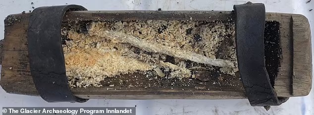 Hộp gỗ 500 năm tuổi của người Viking lộ ra khi sông băng tan chảy.