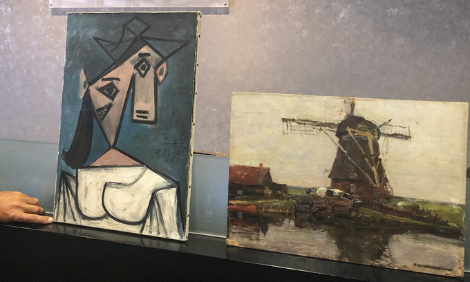 Bức tranh của Picasso (trái) được đưa tới Athens, Hy Lạp, sau khi tìm thấy trong hẻm núi. Ảnh: AFP.