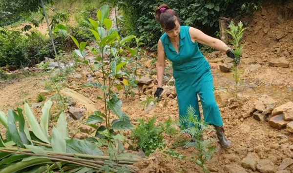 Cô dâu Thu Sao tự tay trồng hoa bên bờ suối chuẩn bị kỉ niệm 3 năm ngày cưới với chú rể Hoa Cương.