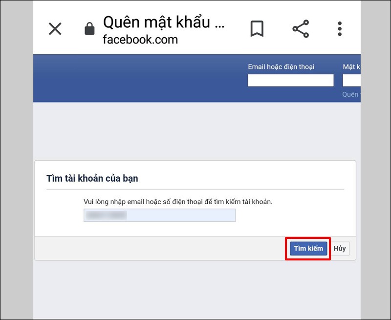 - Bạn sử dụng tính năng trang Facebook’s Find Your Account để tìm tài khoản của mình bằng tên của bạn, username, và số điện thoại (trình duyệt của bạn lúc này không được đăng nhập bất kỳ tài khoản Facebook nào nhé).