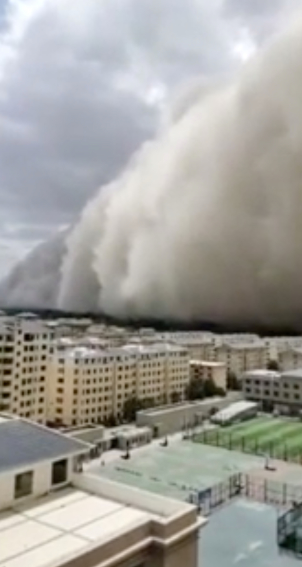 Đoạn video cho thấy khoảnh khắc bức tường cát ập đến nhanh như thế nào tại thành phố nằm bên rìa sa mạc Gobi. Cảnh sát thành phố đã phải đóng cửa nhiều tuyến đường, trong khi các tài xế bỏ xe tìm nơi trú ẩn.