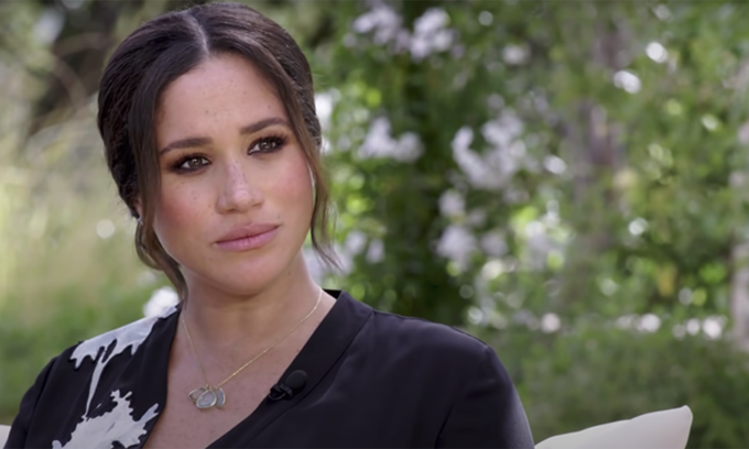 Meghan trong cuộc phỏng vấn được nhà đài Mỹ CBS phát sóng tối 7/3. Ảnh: CBS.