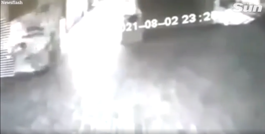 Hai bảo vệ khác xuất hiện ở hiện trường và chạy tới giúp đỡ đồng nghiệp, người trông khá hoảng sợ.