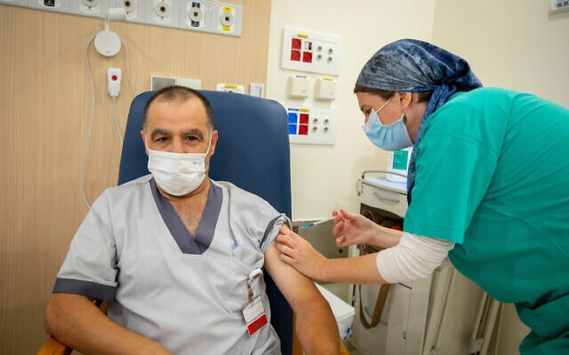 Nhân viên y tế nhận liều vaccine Covid-19 thứ ba ở Jerusalem vào ngày 17/8. Ảnh: Flash90.
