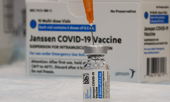 Một lọ vaccine Johnson & Johnson tại điểm tiêm chủng ở New York hồi tháng 4. Ảnh: AP.