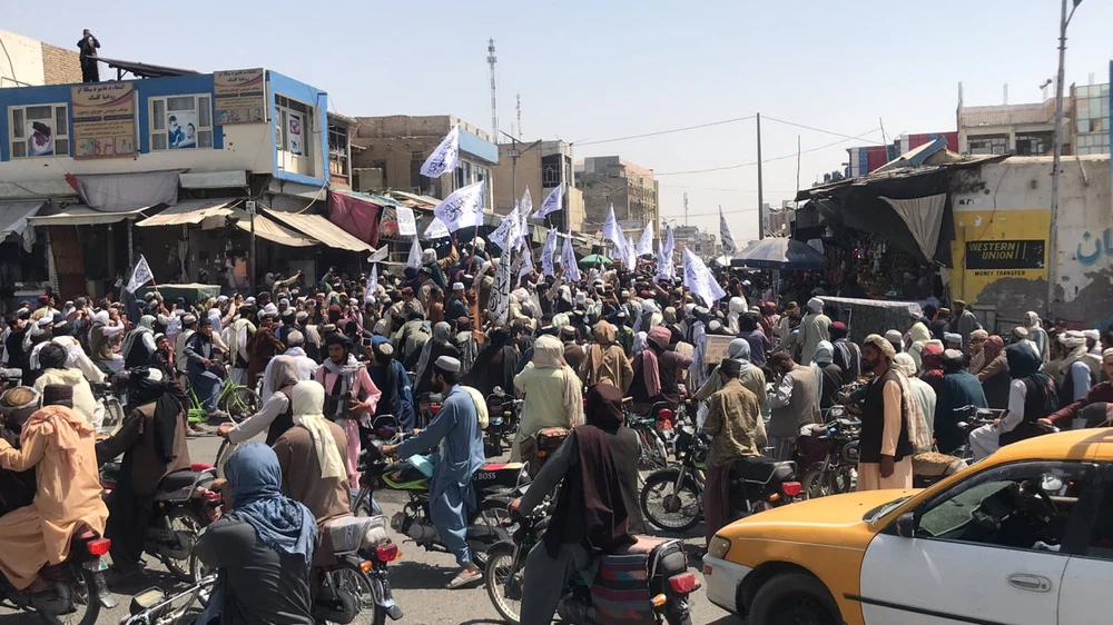 Trong khi đó, ở phía đông nam thành phố Khost, một đám đông những người ủng hộ Taliban đã tổ chức một "đám tang" giả, mang theo những chiếc quan tài phủ cờ Mỹ, NATO, Anh và Pháp, cũng như một số biểu ngữ của Cộng hòa Hồi giáo bị đánh bại ở Afghanistan - hiện các lá cờ đã được thay thế bằng lá cờ trắng của "Tiểu vương quốc Hồi giáo Taliban".