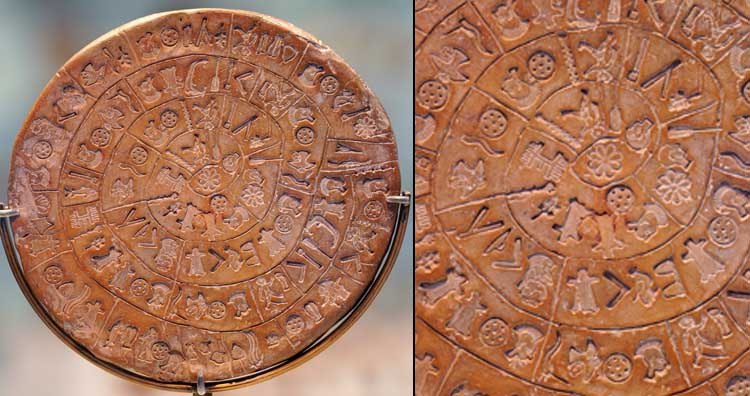 Đĩa rộng 15 cm được bao phủ bởi 241 mã thông báo được tạo thành từ 45 dấu hiệu riêng biệt ở cả hai mặt theo hình xoắn ốc hướng theo chiều kim đồng hồ. Các chuyên gia trong lĩnh vực này thậm chí còn không chắc rằng đó là kịch bản, giáo trình, bảng chữ cái hay cụ thể là cái gì. Họ thậm chí không mong đợi rằng sẽ giải mã thành công, bởi vì nó là vật thể độc nhất vô nhị và không có tài liệu tham khảo để phân tích có ý nghĩa.