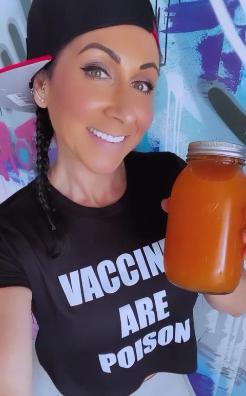 Chẳng hạn, Evie Kevish, một huấn luyện viên môn crossfit và “chuyên gia trị liệu sức khỏe bằng nước trái cây được cấp chứng nhận”, đã mặc chiếc áo có dòng chữ “Vaccine là thuốc độc” trong một video đăng ngày 27/6.