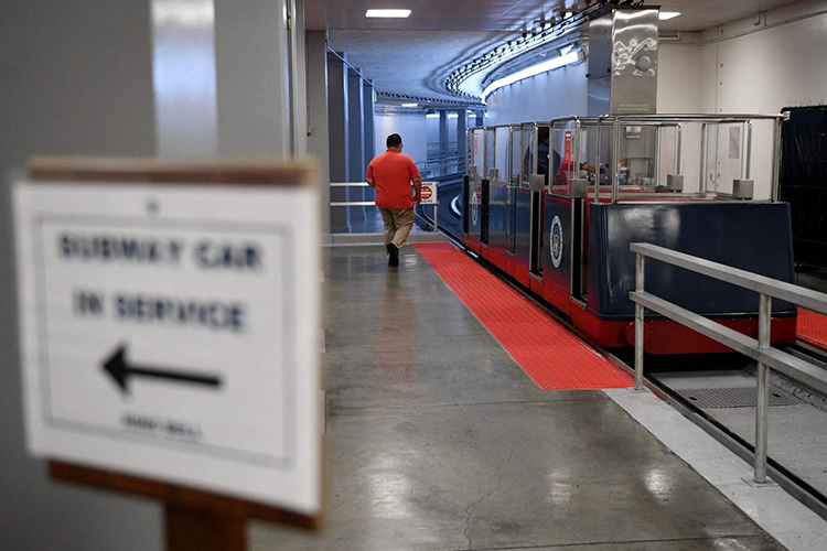 Các Thượng nghị sĩ Mỹ di chuyển trong hệ thống tàu điện ngầm dưới Tòa nhà Quốc hội Mỹ. Ảnh: Reuters