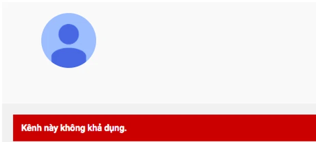 Kênh YouTube của Hồ Văn Cường khi truy cập sẽ hiện nội dung: "Kênh này không khả dụng"