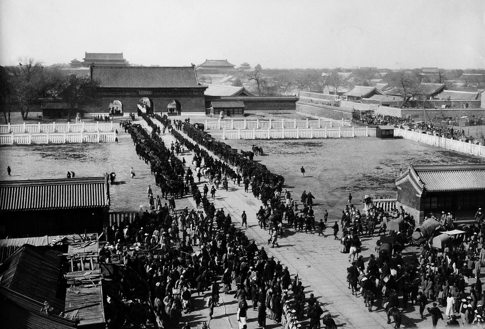 Các quan chức triều đình Thanh trở lại Tử Cấm Thành ở Bắc Kinh năm 1901 sau sự kiện Nghĩa Hòa Đoàn. Ảnh chụp bởi Paula von Rosthorn, người đến Bắc Kinh từ 5 năm trước đó và đã tham gia bảo vệ các phái đoàn ngoại giao trước cuộc tấn công của Nghĩa Hòa Đoàn (Nguồn: SCMP)