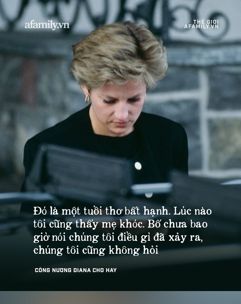 "Đó là một tuổi thơ bất hạnh. Lúc nào tôi cũng thấy mẹ khóc. Bố chưa bao giờ nói chúng tôi về điều đó, chúng tôi cũng không hỏi", Công nương Diana cho hay.