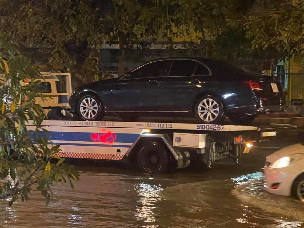 Mới đây xế hộp của Trang Trần đã phải nhờ đến cứu hộ để cẩu lên. Được biết cô vừa mới ngồi uống cà phê được 45 phút. Không có mưa mà vẫn bị ngập nặng như trong hình.