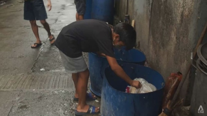Jonathan Mapa đi nhặt rác và các đồ nhựa tái chế, mỗi chiều có thể kiếm 0,4 USD. Ảnh: CNA